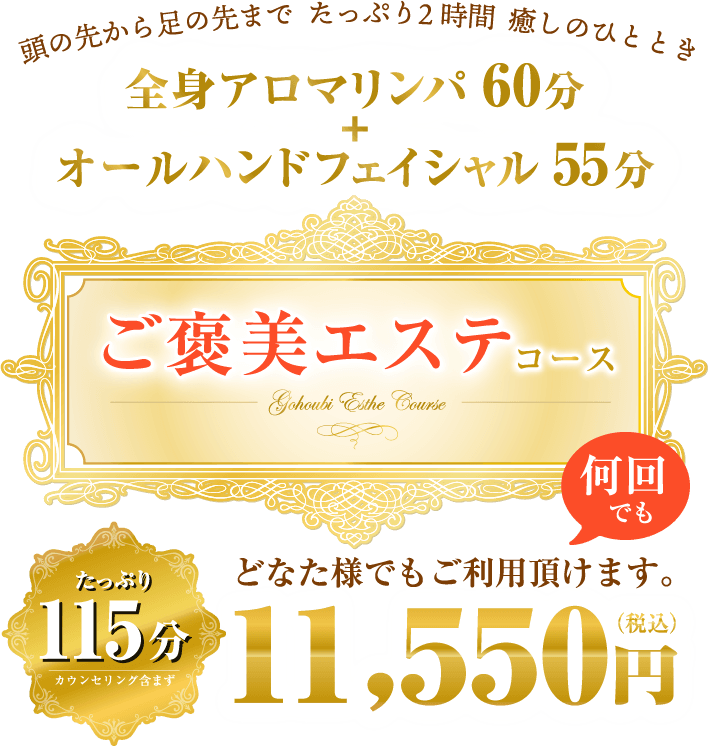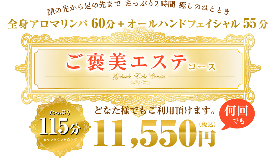 テラピ(金沢市のエステ)TOP>ご褒美エステコース